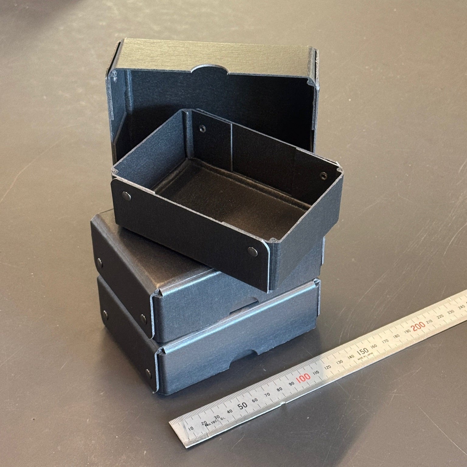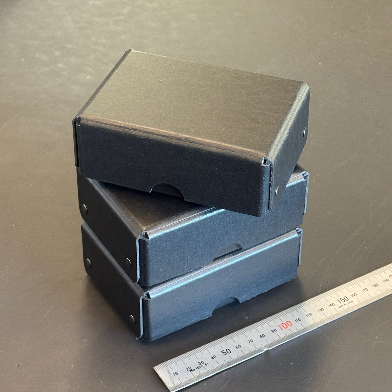 Sæt med tre små æsker med halvmåneudskæring, der gør de let at åbne æsken.